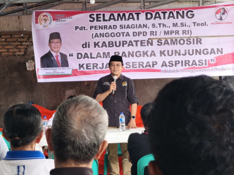 PIJARPOS.com, SAMOSIR, SUMUT   — Anggota DPD RI Pdt. Penrad Siagian menemui masyarakat Samosir pengguna dan pengelola tanah eks Belanda atau Gemeente di Sekretariat Forum Komunikasi Masyarakat Tanah Eks Penguasaan Belanda Kecamatan Pangururan, Sabtu, 18 Oktober 2025.