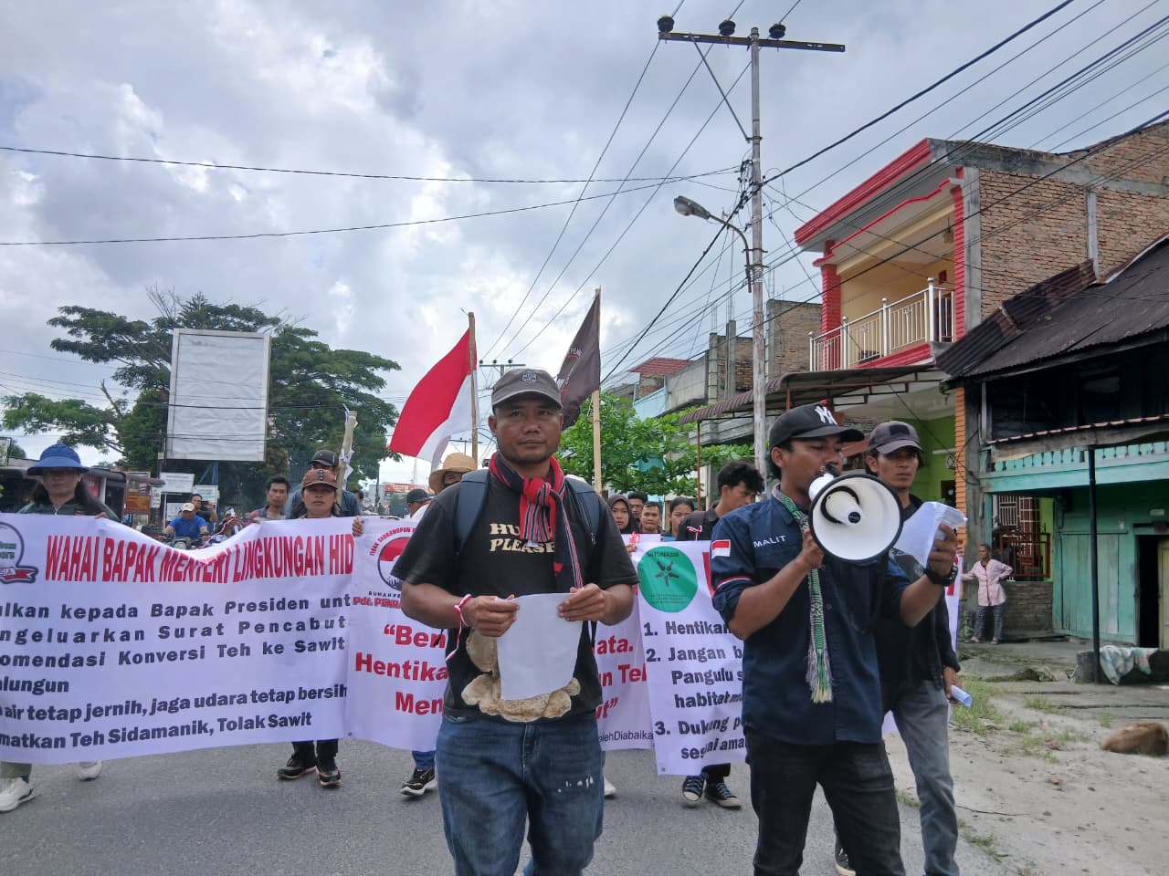 Dalam orasinya, Julius menilai alih fungsi lahan teh menjadi sawit akan merusak keanekaragaman hayati, mengurangi ketersediaan air bersih, menyebabkan erosi, hingga mempercepat perubahan iklim.