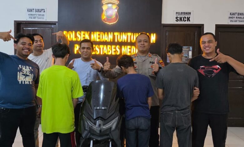 PIJARPOS.com, Medan – Polsek Medan Tuntungan berhasil mengamankan tiga remaja yang diduga kuat sebagai pelaku tindak pidana pencurian dengan kekerasan (begal) sepeda motor di wilayah hukum Polrestabes Medan.