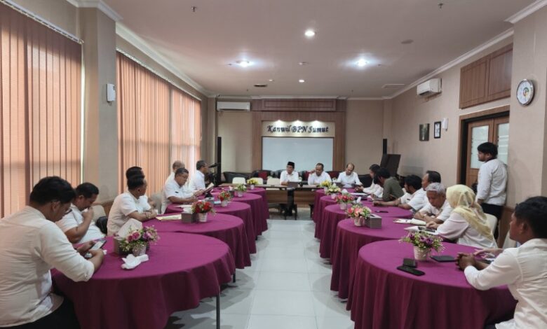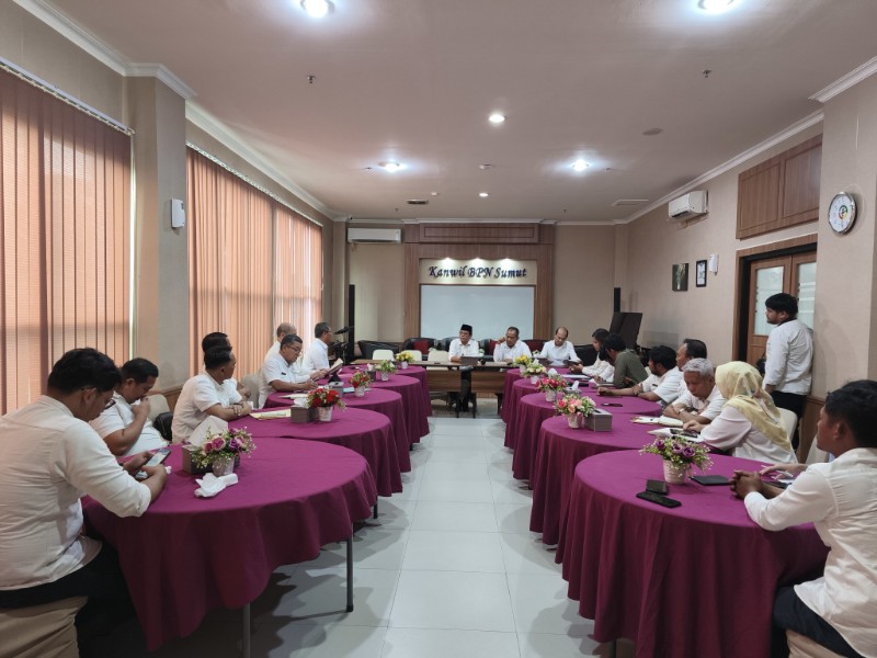 Turut hadir dalam pertemuan ini Plt. Kepala Bidang Pengendalian dan Penanganan Sengketa, Seti Kuncoro, serta sejumlah kepala kantor pertanahan dari berbagai kabupaten/kota di Sumut.