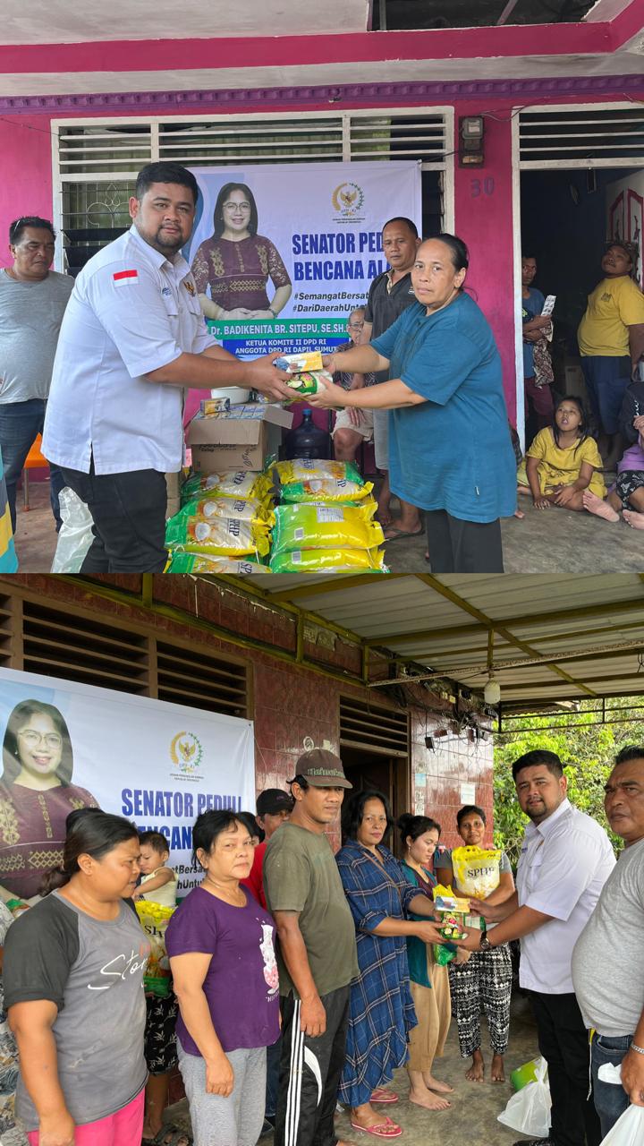 Sebagai wujud kepedulian dan keprihatinannya, Dr. Badikenita Putri br Sitepu, SE, SH, M.Si, mengirimkan bantuan melalui tim lapangan yang langsung turun ke lokasi terdampak. Adapun bantuan yang disalurkan terdiri dari beras, gula, bubuk teh, dan minyak goreng. Selain itu, bantuan tersebut juga didukung oleh anggaran dana task force dari anggota DPD RI, yang mana dana task force tersebut merupakan dana yang dikumpulkan secara kolektif oleh seluruh anggota DPD RI. Pemanfaatannya untuk membantu korban bencana alam di berbagai daerah di Indonesia.