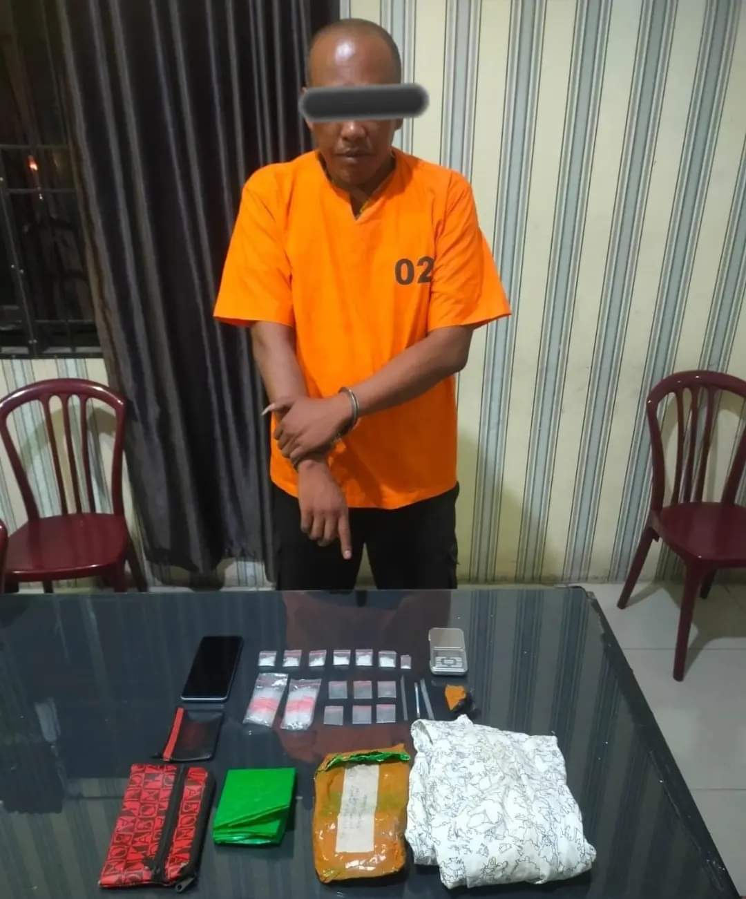 Kapolres Tanah Karo AKBP Wahyudi Rahman, S.H, S.I.K, M.M, CPHR, CBA, melalui Kasat Narkoba AKP Hendry Tobing, S.H, menjelaskan pelaku yang diamankan ialah AMS (43), warga Desa Tigabinanga.