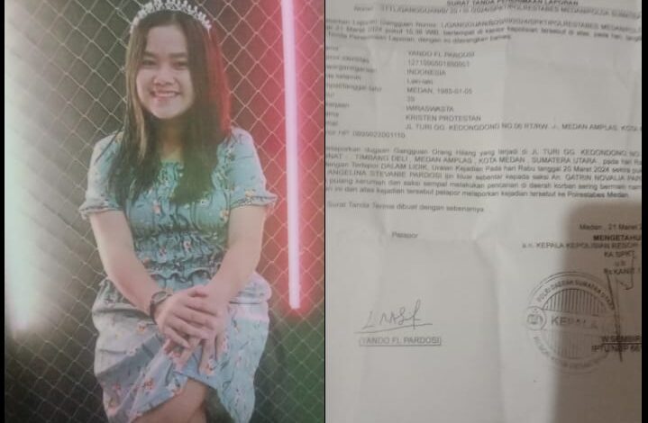 PIJARPOS.com, MEDAN – Melina Angelina Stevanie boru Pardosi (14 tahun), warga Jalan Turi, Gang Kedondong nomor 06 Kelurahan Medan Amplas, Kota Medan yang berstatus masih sebagai anak sekolah menengah pertama (SMP ) kelas VII, di salah sekolah negeri di Kota Medan yang hilang sudah berjalan sembilan hari masih belum ditemukan. Informasi yang berhasil dirangkum awak media ini, sebelum kejadian korban sempat minta izin keluar rumah sebentar pada namboruna (sebutan untuk adik perempuan dari bapak) bernama Gatrin Novalia Pardosi, pada Rabu (20/ 3/2024) pukul 15.00 WIB lalu.