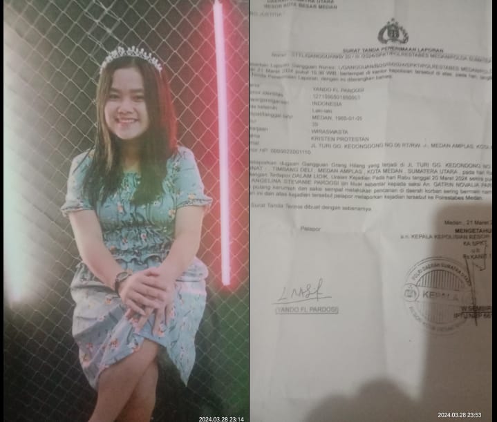 Kepada awak media ini saat dimintai keteranganya, Sudirman Kharisma Pardosi (65) tahun, yang merupakan opung doli, dan Sinta Melinda Tambunan (64) tahun mengatakan Rabu 20 Maret 2024 pukul 15.00 WIB, cucu perempuannya bernama Melina Angelina Stevanie Pardosi itu izin permisi keluar pada namborunya, namun cucunya tersebut saat ditanya oleh namborunya tidak memberitahukan tujuannya kemana hingga sekitar pukul 19.00 WIB, saat hendak dihubungi ke dua nomor kontak milik cucunya ( 081365053988, 085372336950) tersebut tidak dapat dihubungi alias tidak aktif lagi,” terang kedua Opungnya.