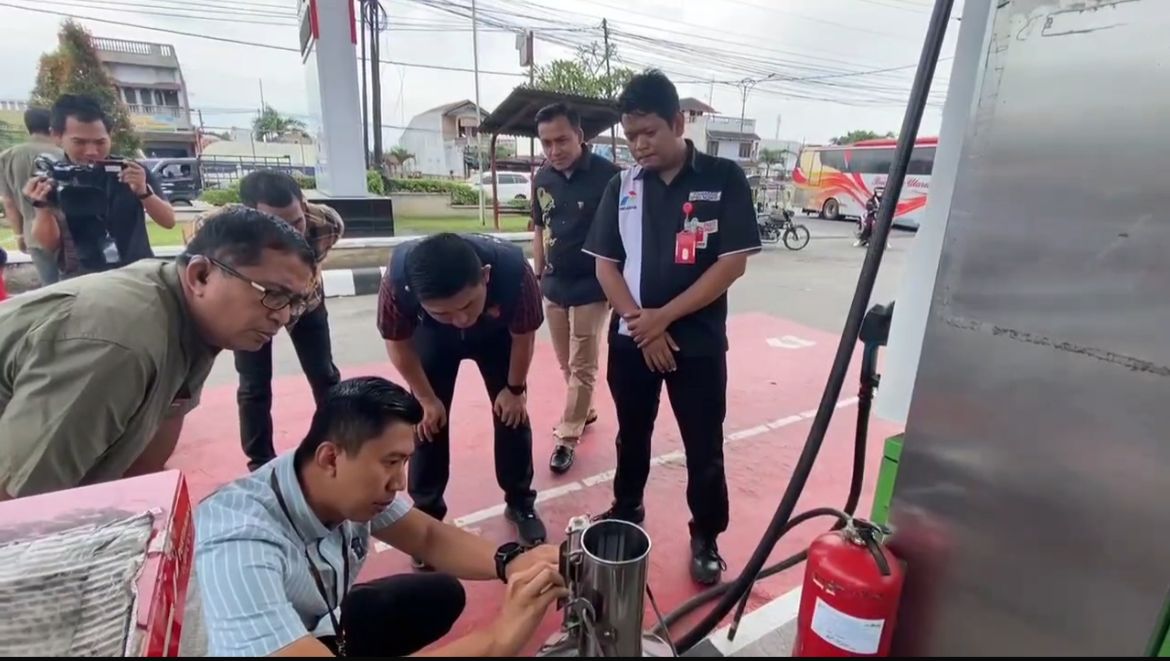 Kasubdit Tipidter Dit Reskrimsus Polda Sumut, AKBP M Alan Haikel, bersama Sales Branch Manager Medan Pertamina Patra Niaga Sumbagut, Devian Faris Hidayat, memimpin pengecekan di dua lokasi, yakni SPBU Pertamina di Kecamatan Medan Amplas.
