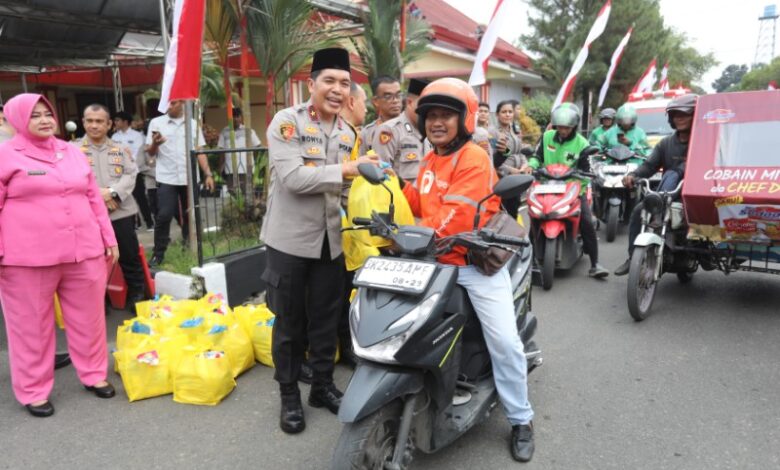 Ratusan paket bantuan dibagikan kepada masyarakat yang hadir, termasuk kepada komunitas pengemudi ojek online (ojol) di Sumatera Utara. Perwakilan dari keluarga besar ojol Sumut mengucapkan terima kasih kepada Kapolda Sumut beserta seluruh jajaran Polda Sumut atas perhatian dan kepeduliannya.