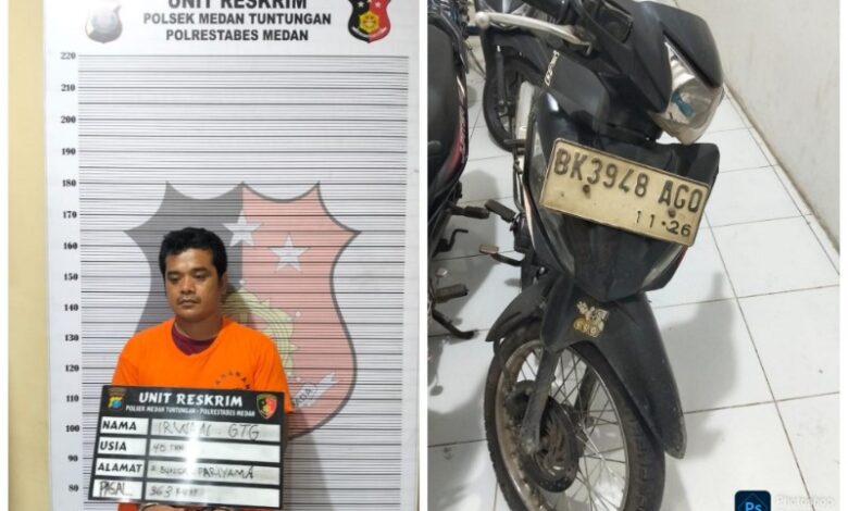 PIJARPOS.com, Medan – Tim Unit Reskrim Polsek Medan Tuntungan berhasil mengamankan seorang pria berinisial Irwan Ginting (40) terkait kasus pencurian sepeda motor milik seorang sopir angkot di wilayah Jalan Bunga Pariaman I, Kelurahan Ladang Bambu, Kecamatan Medan Tuntungan.
