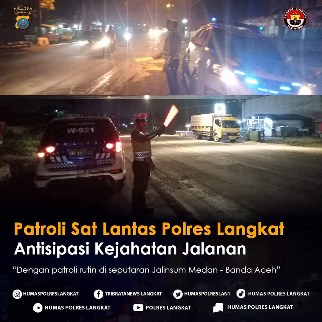 Antisipasi Kejahatan Jalanan, Unit Turjawali Sat Lantas Polres Langkat Lakukan Patroli